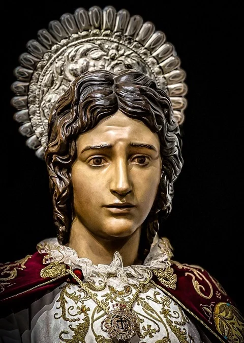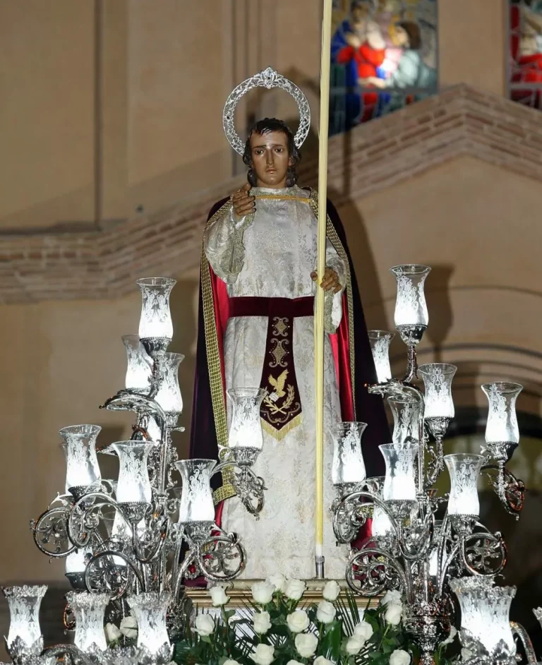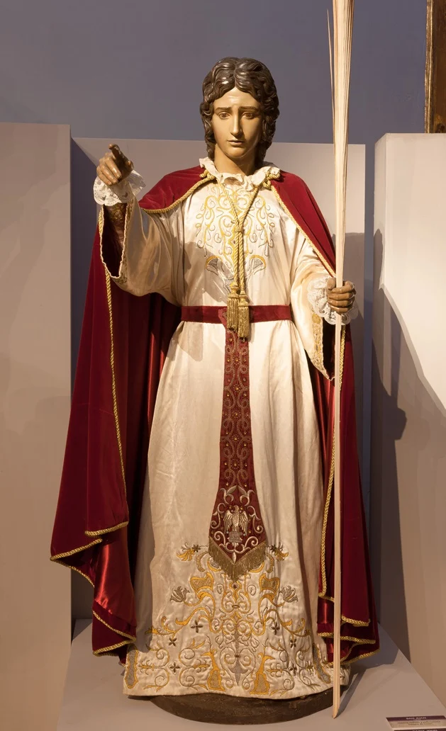 Se estima que en torno a 1752 se realiza el encargo de la imagen de San Juan. La imagen era de vestir, por lo cual sólo eran de talla la cabeza y las manos. Las manos fueros sustituidas por otras nuevas debido al incendio que 1853 afectó al trono de San Juan. En 1929 la mano sufrió otra rotura, cuando el trono pasaba por la zona más estrecha de la calle Honda. También, en 1925, se realizó una reforma que consistió en la modificación de los hombros, de los que al parecer, estaba algo levantado.